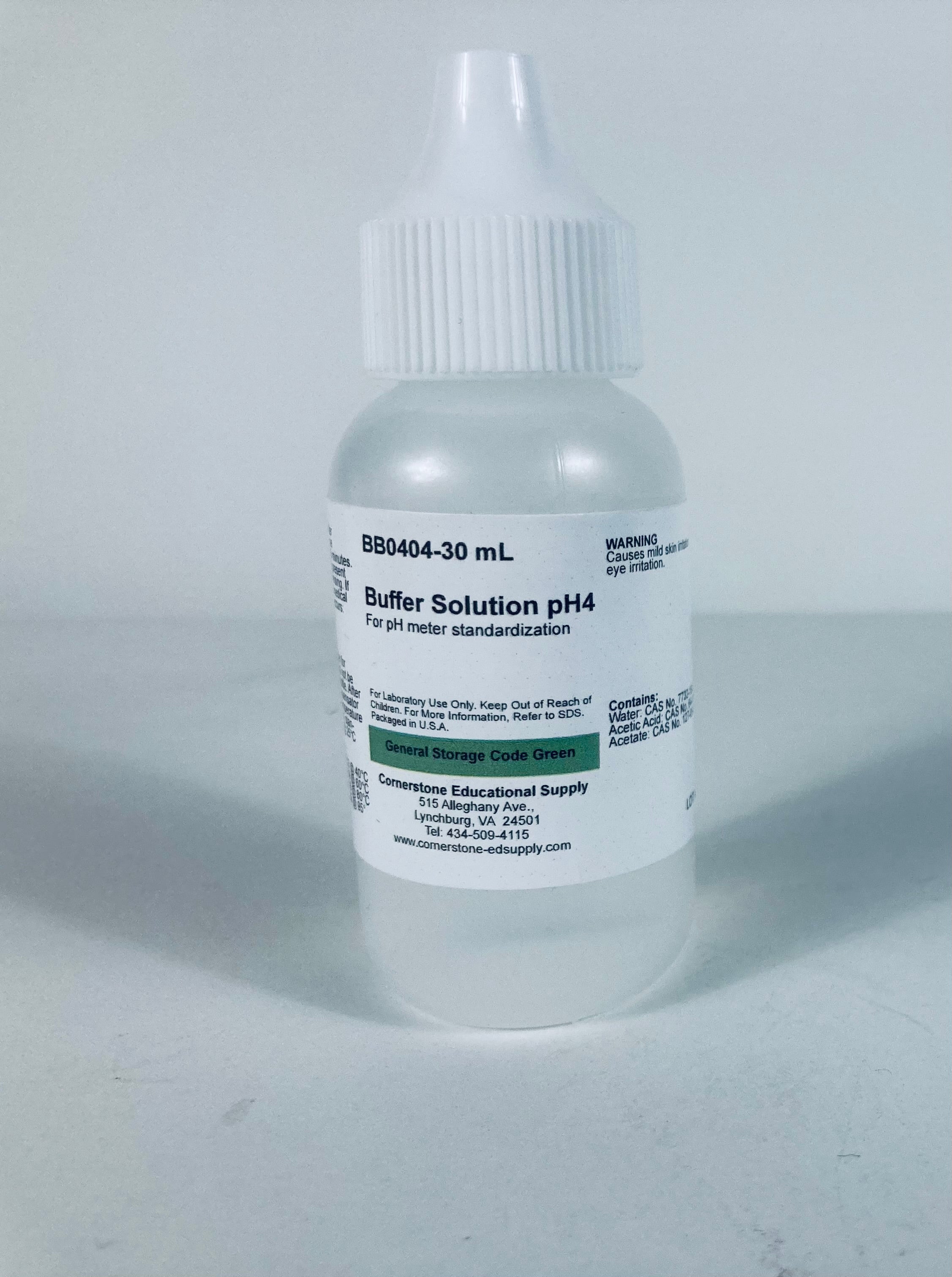 30 mL bottle of pH 4 buffer solution.